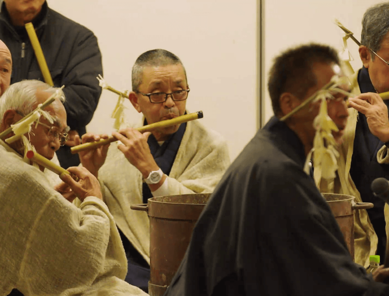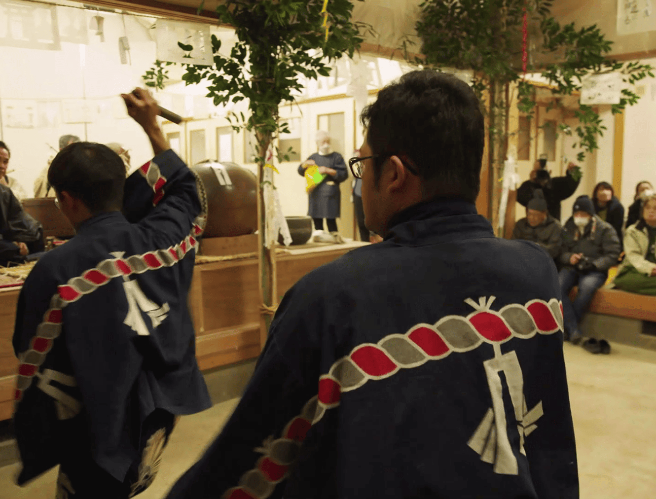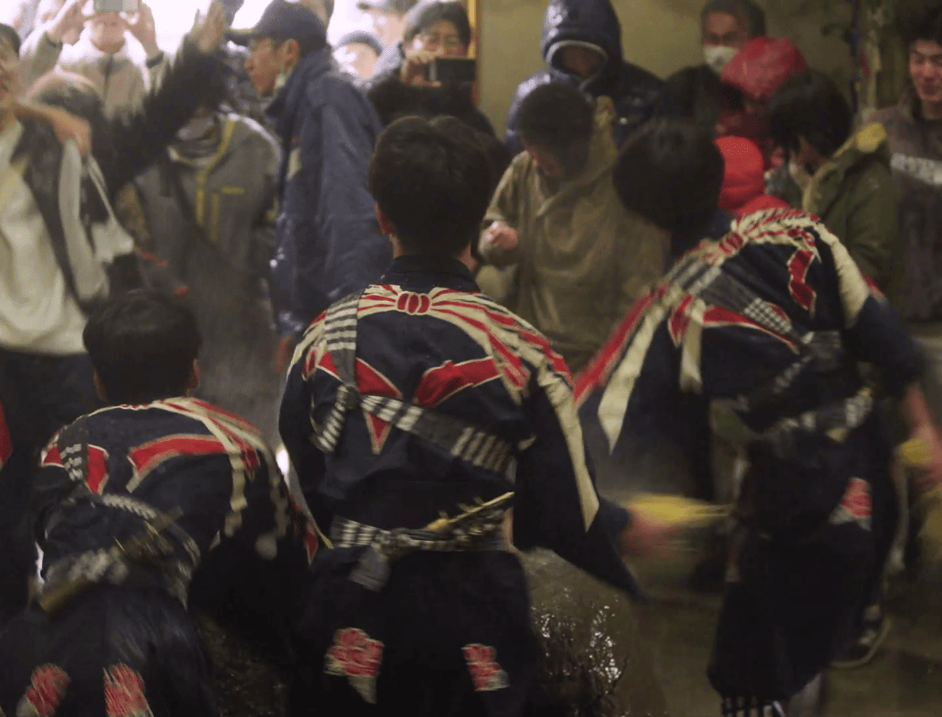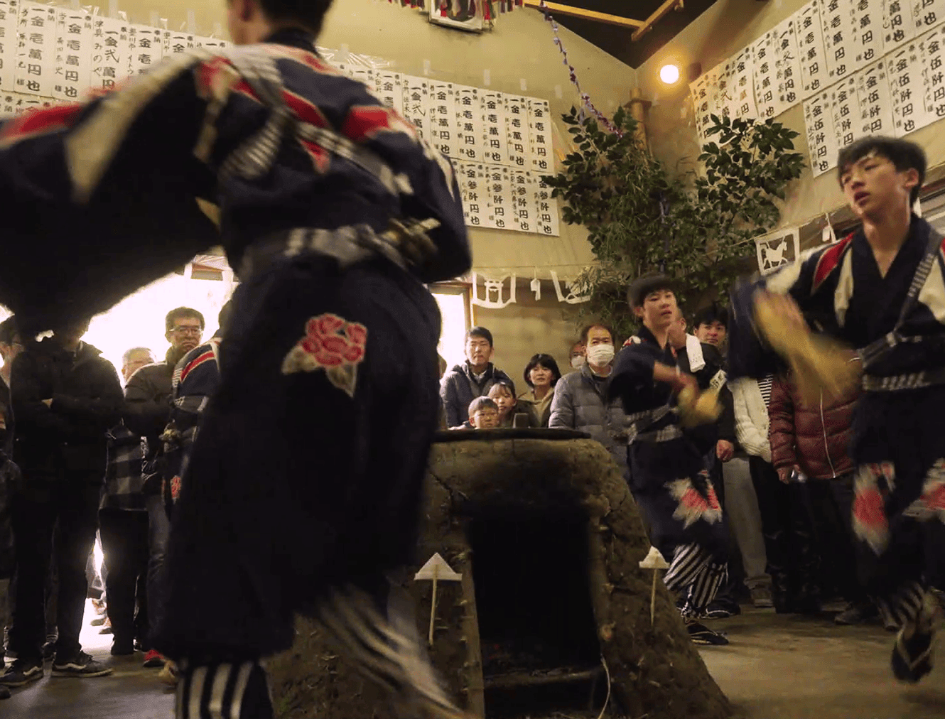 In all of the dances, performers strongly stamp the ground, and the entire venue becomes energized as the audience chants "Tēhohe, Tehohe” in unison around the dancers. It is said that the festival was introduced by ascetic monks during the Kamakura to Muromachi periods. The dances include ritualistic gestures that seem to awaken the spirits of the earth, evoking a sense of "rebirth” as the spirits, which have sunk into the ground during the depths of winter, are brought back to life.