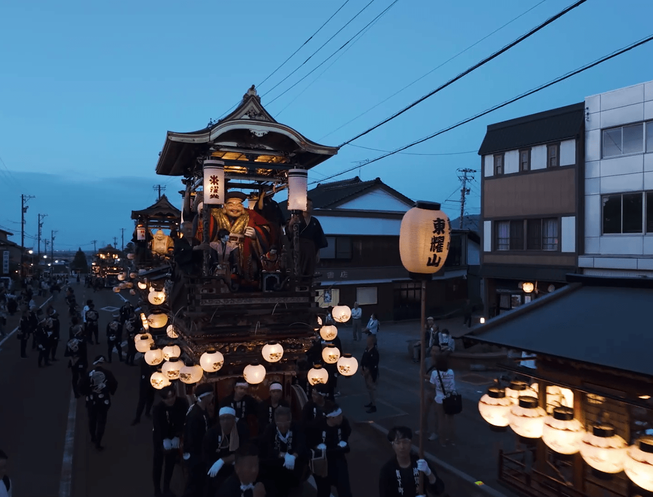 The daytime parade is valiant and dynamic, while in the evening, the hikiyama are illuminated, creating a magical and dreamlike scene. The Johana area is often called the "Little Kyoto of Etchu,” and this elegant, beautiful festival truly lives up to that name.