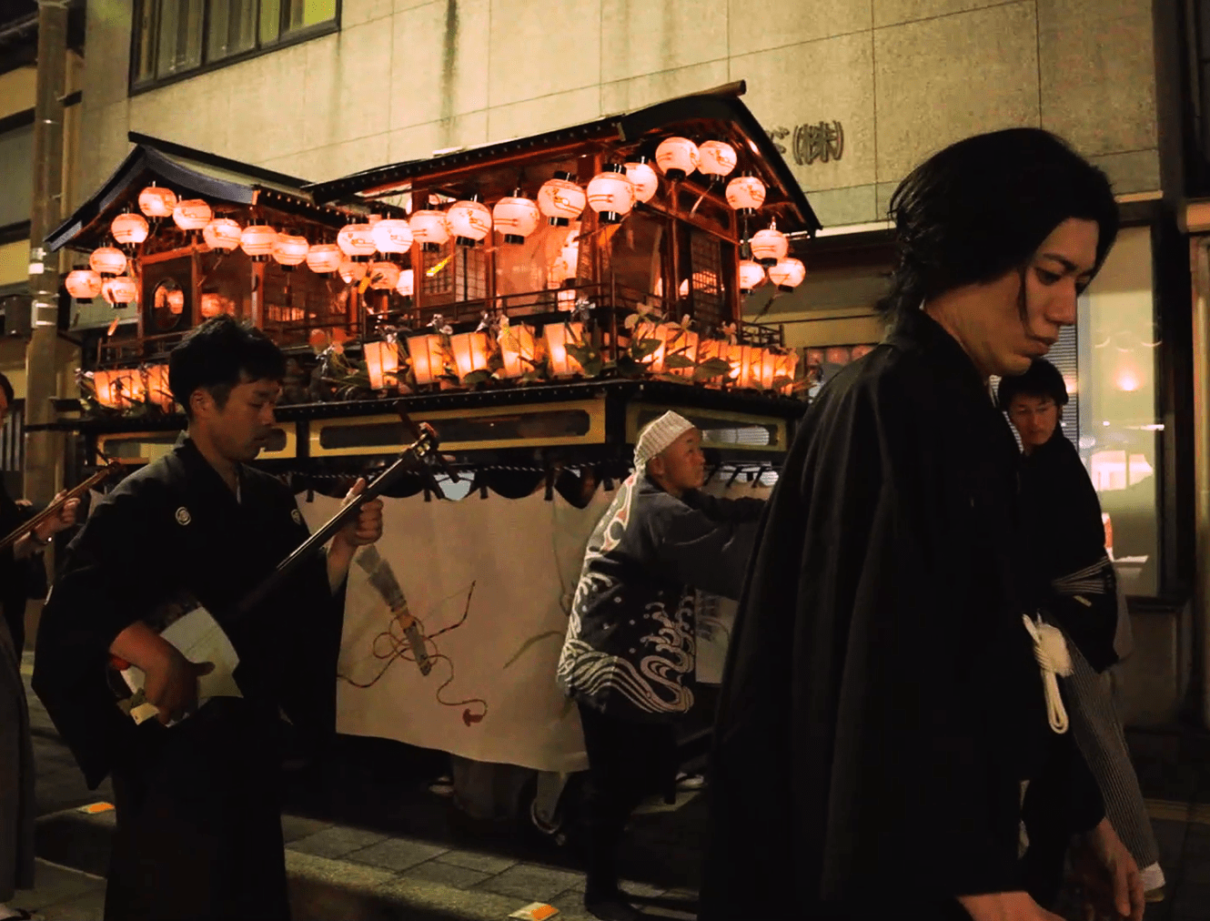 On the iori-yatai, performers play traditional instruments such as the shinobue (bamboo flute), taiko (drums), and shamisen while singing "iori-uta,” a refined style of song that traces its origins to Edo hauta (short lyrical songs), creating an elegant atmosphere. Following these are the lacquered hikiyama, adorned with elaborate carvings and gold leaf. These floats are masterpieces of craftsmanship by local artisans and are often referred to as "moving works of art.”
