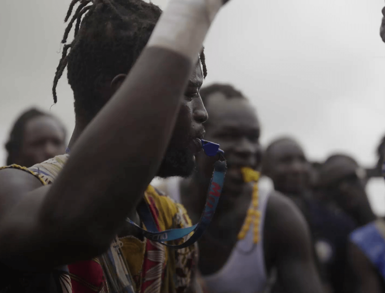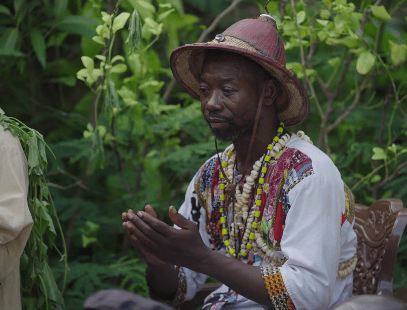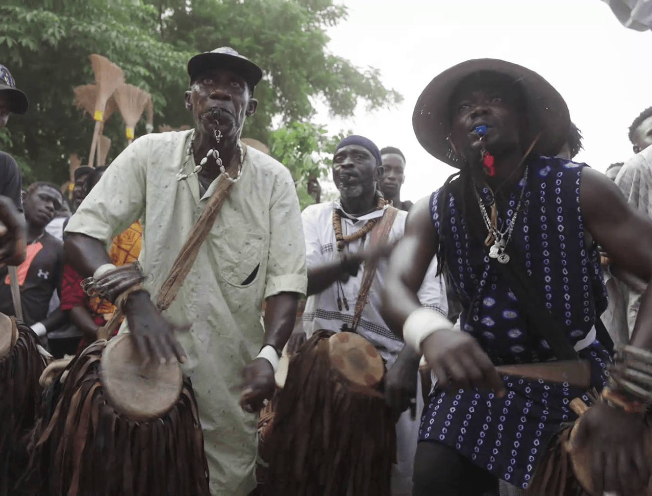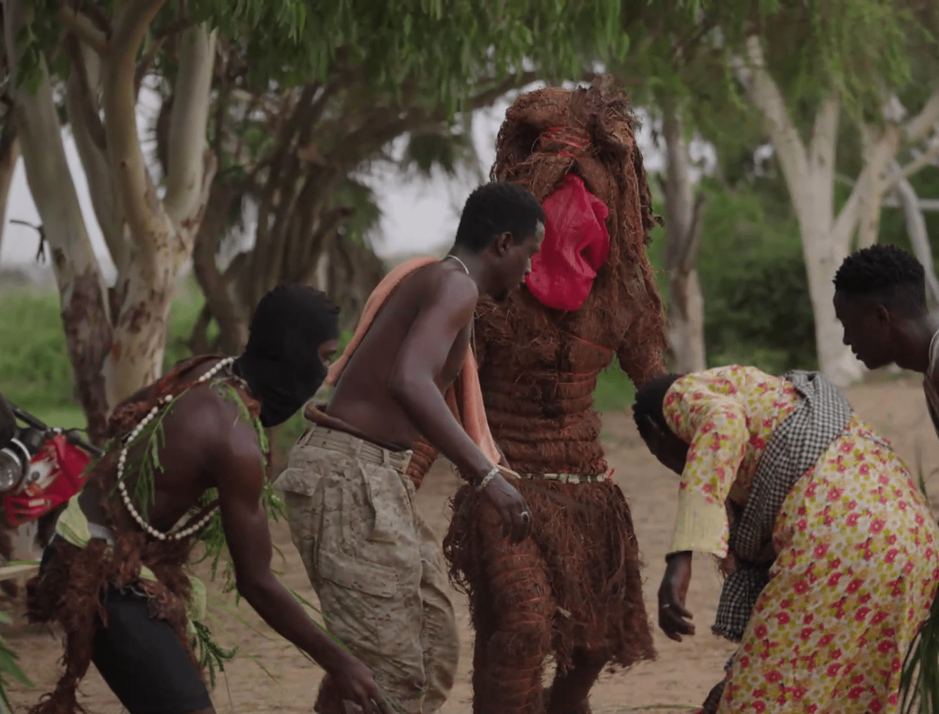 The Kankurang is a circumcision ritual still practiced in parts of Senegal, featuring a figure that resembles a walking tree parading through the streets. The performance by the Doudou family was filmed on Gorée Island.