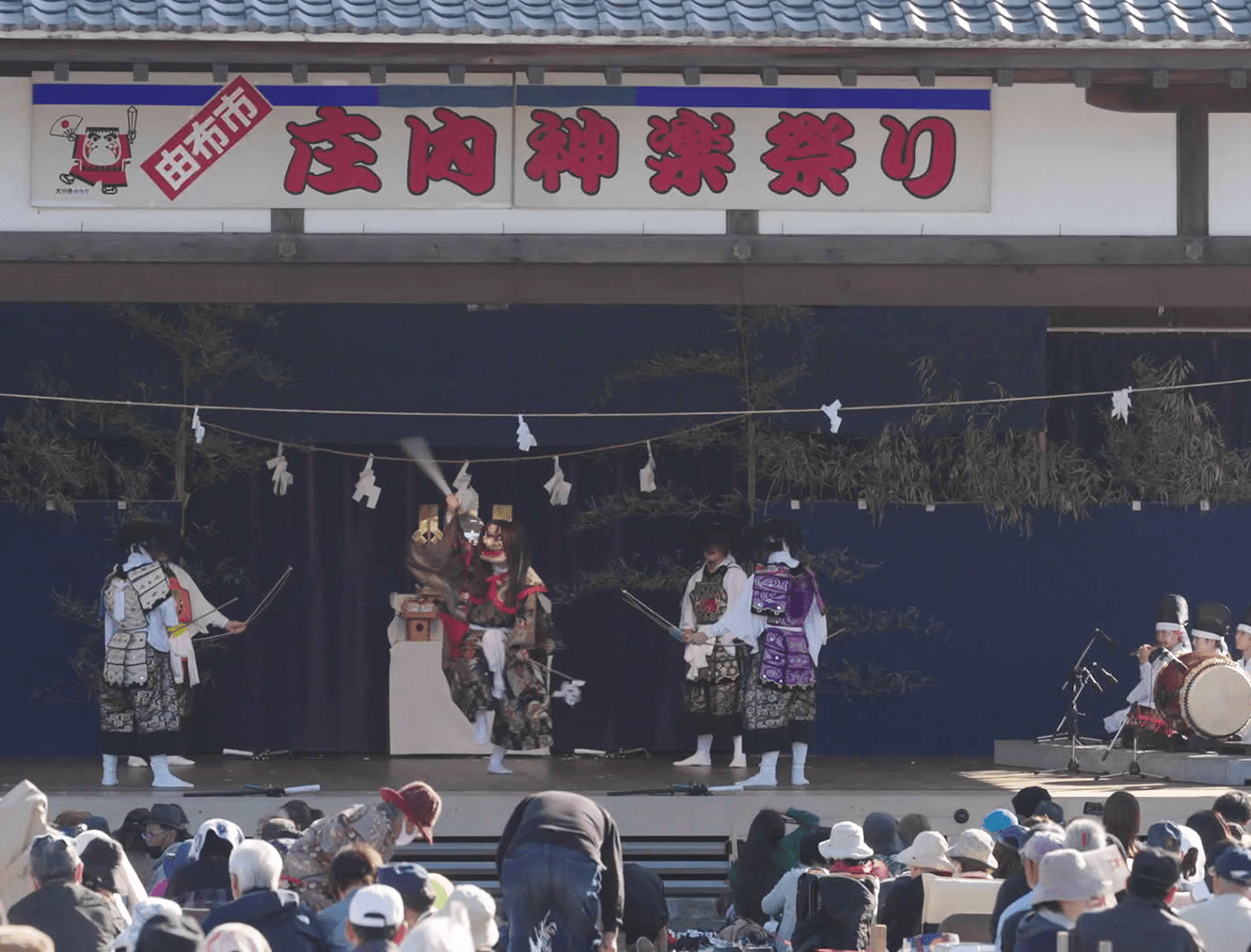 Shonai Kagura has two distinct schools, both share a fast tempo, rhythmic taiko (drums) and flutes, and powerful, intense movements. The bold energy and dynamic execution of these performances continue to captivate audiences.