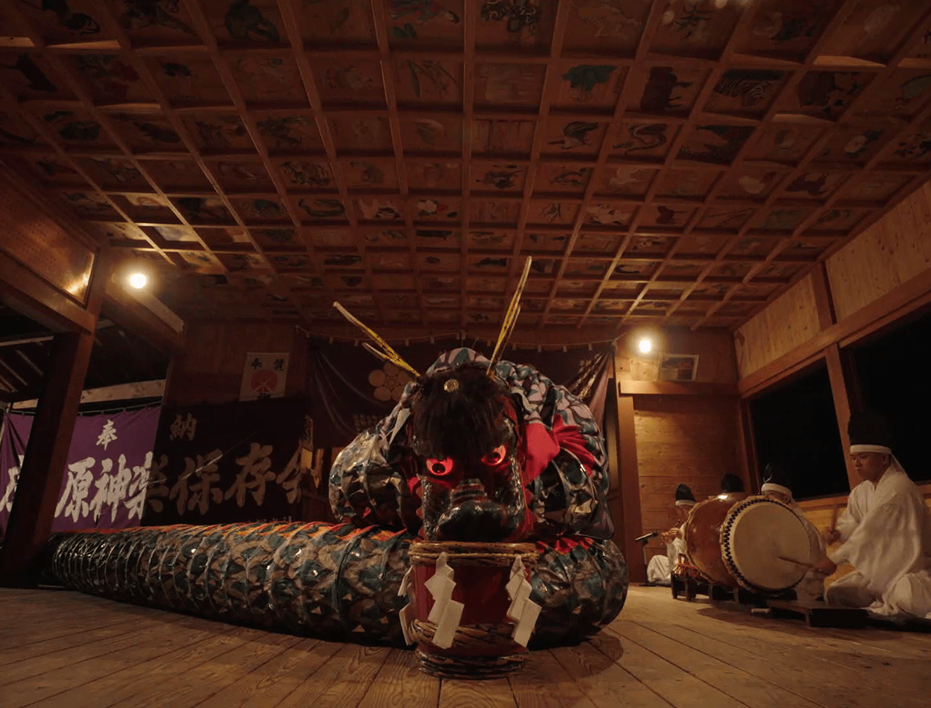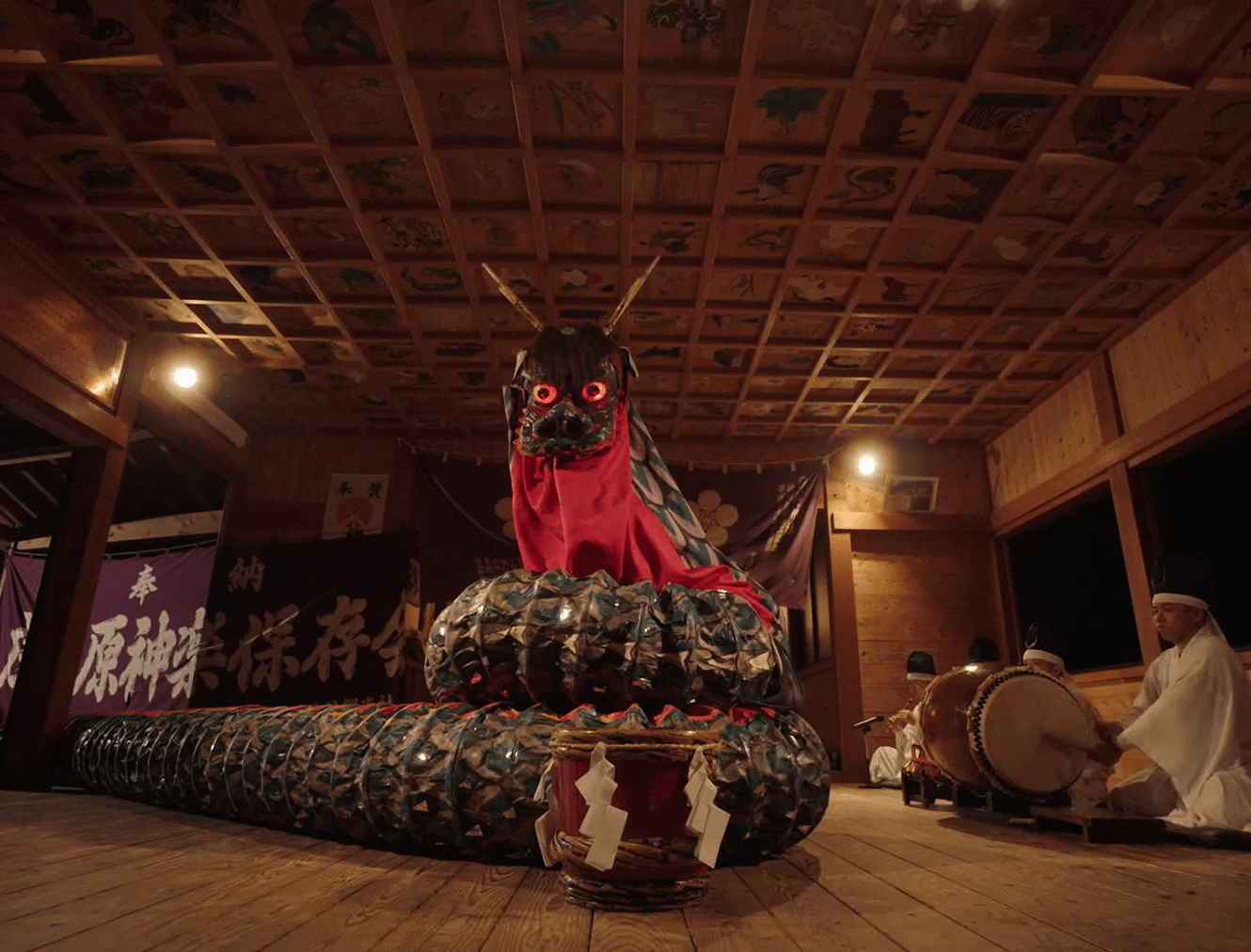 The recorded footage, produced with the cooperation of the Shonaibaru Kagura Preservation Society, showcases two iconic performances: "The Defeat of the Serpent" and "Dividing the Sun."
