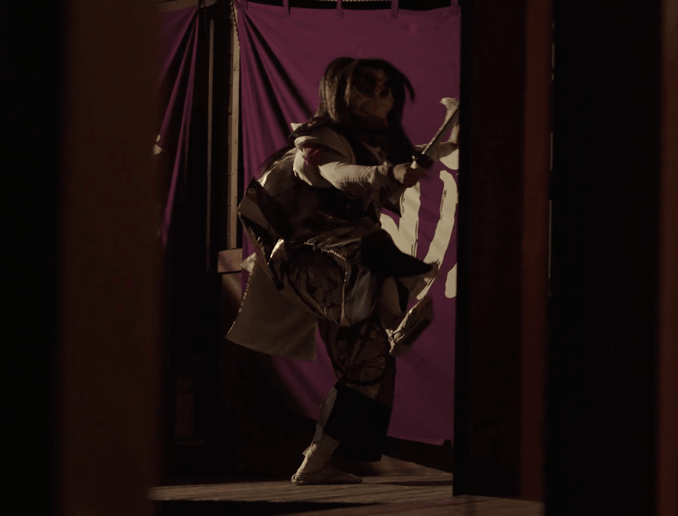 "The Defeat of the Serpent" is based on Japanese mythology, this piece reenacts Susanoo-no-Mikoto’s legendary battle against the giant serpent Yamata-no-Orochi. A single dancer masterfully manipulates a large serpent puppet, depicting its movements as it drinks sake, falls asleep in a drunken stupor, and thrashes about in an intense battle against Susanoo. The performance is highly dynamic, with the action filling the entire stage.