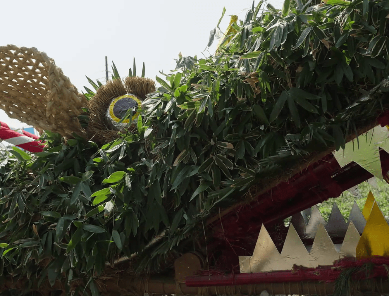 A giant dragon-serpent made of straw, parades through the town before entering a pond to offer prayers for rain.