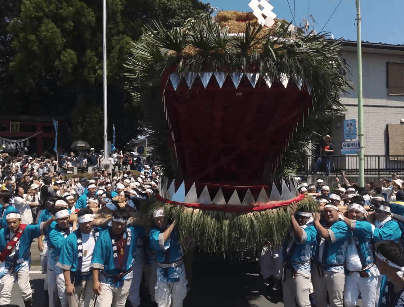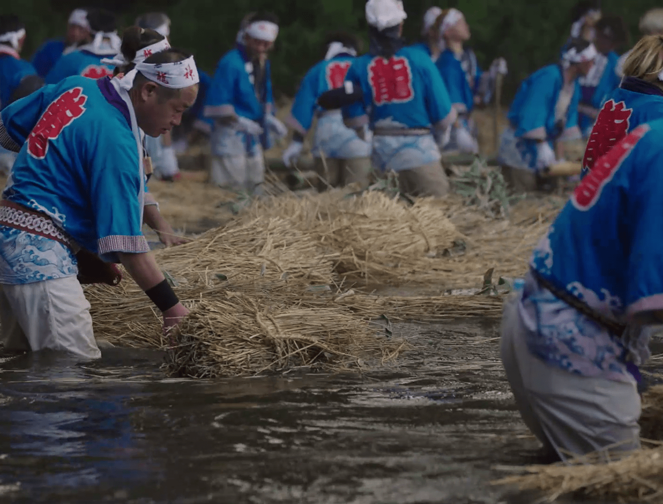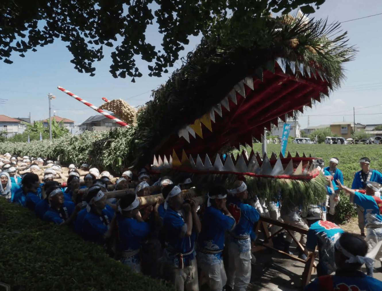 A rainmaking ritual held once every four years. To call forth rain, a gigantic dragon serpent measuring 36 meters in length and weighing 3 tons is created using bamboo and straw. Local residents construct the body by layering straw onto a bamboo frame. On the day of the procession, children gather to decorate the dragon with kumazasa (bamboo grass). During the "Ritual of Soul Insertion,” sacred water brought from Raiden Shrine in Itakura, Gunma Prefecture, is offered to the dragon, transforming it into a "dragon deity.”